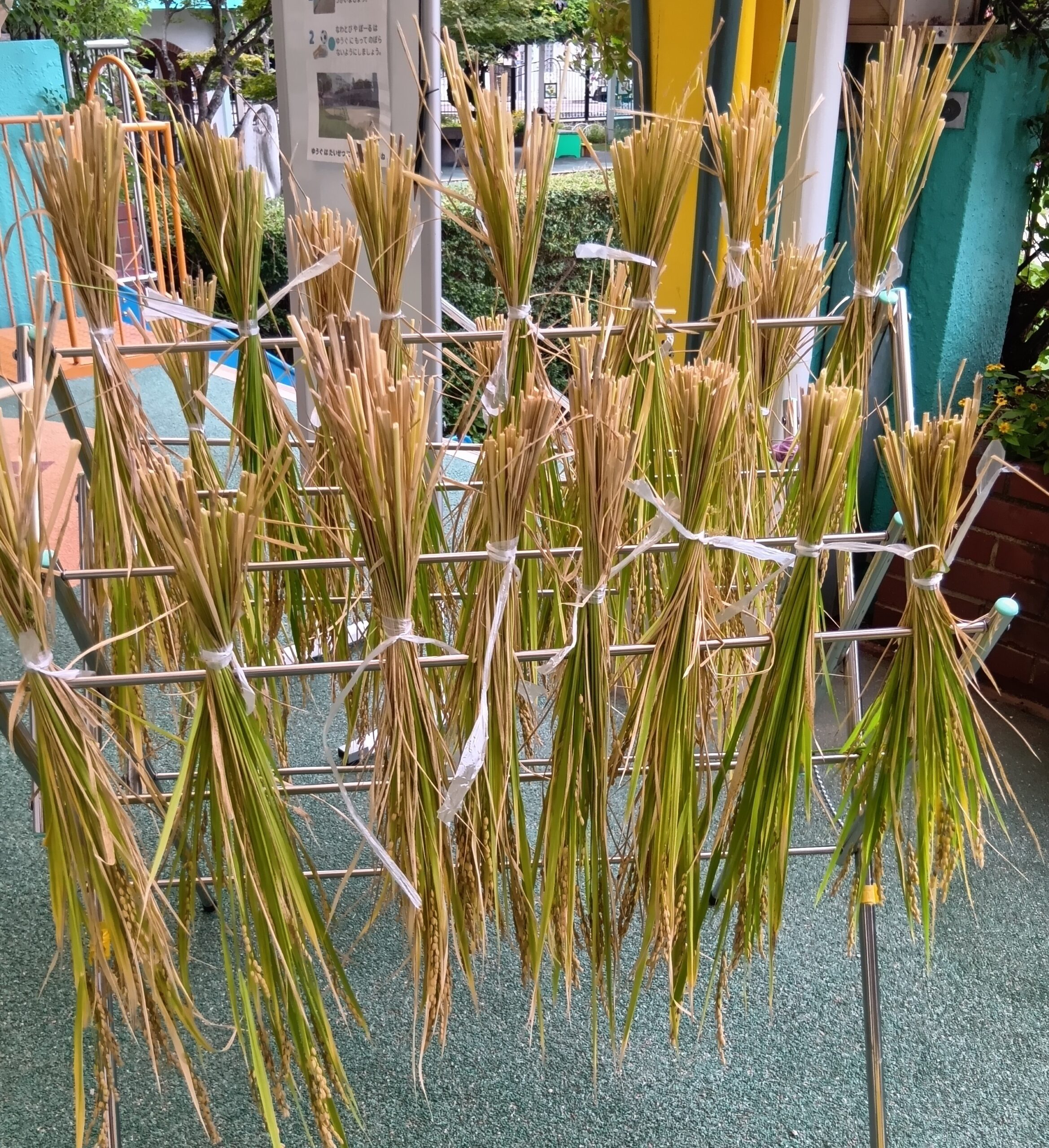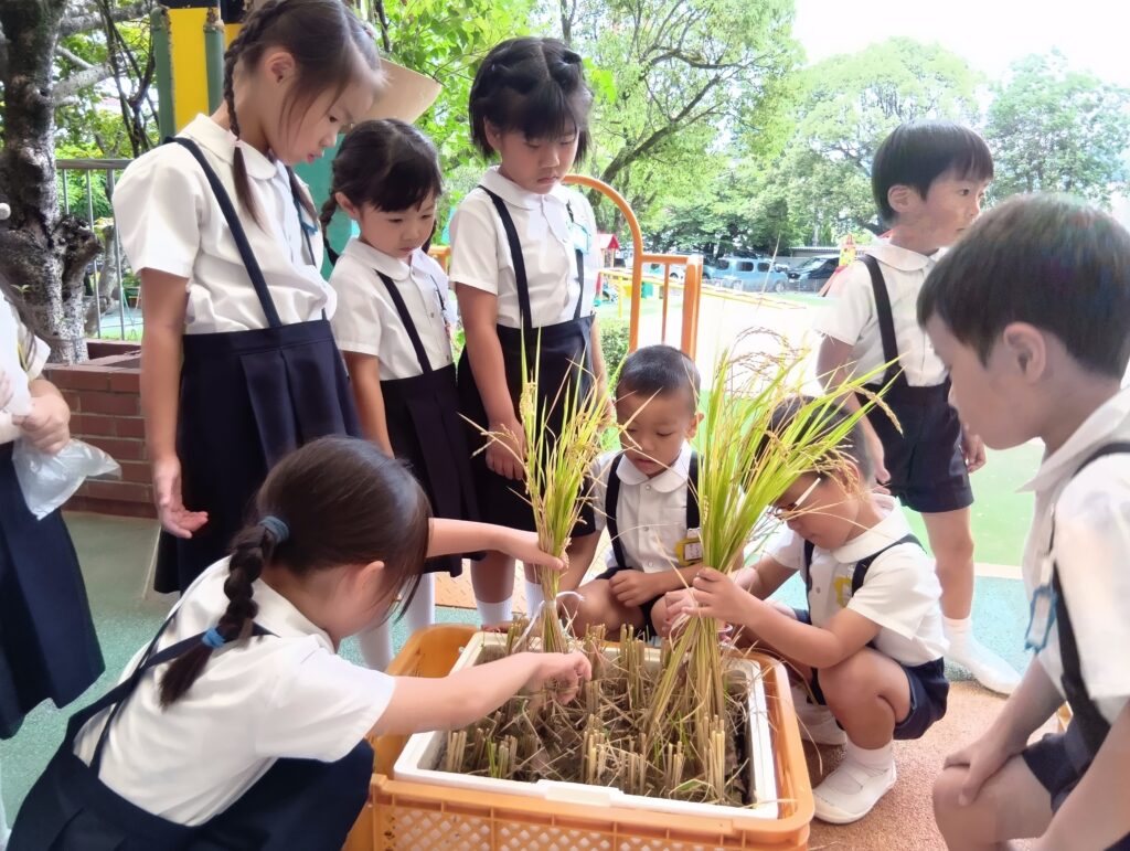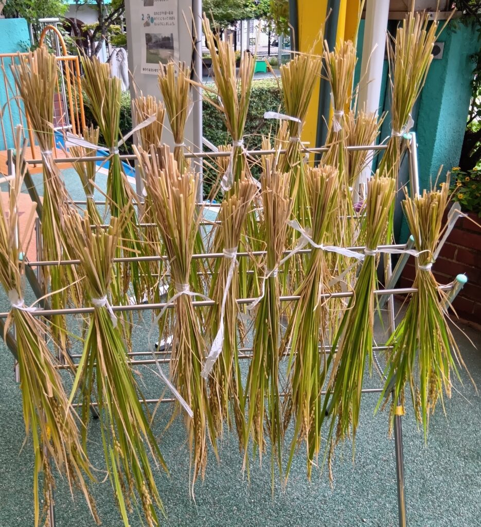 稲刈り 作成者 webss公開日 2025年10月3日稲刈り にコメントを残す しんあい米も稲刈りの時期になりました。落水を終えて、みんなで稲刈り! 251003123150013 251003122858333 251003133840190 お天気のいい日にしばらく天日干しします 毎日いただくお米。たくさんたくさんの手をかけて作られていることを知りましたね さて、これでどのくらいのごはんができるのかな