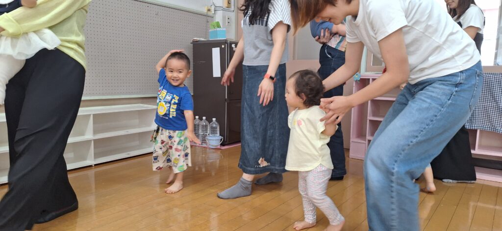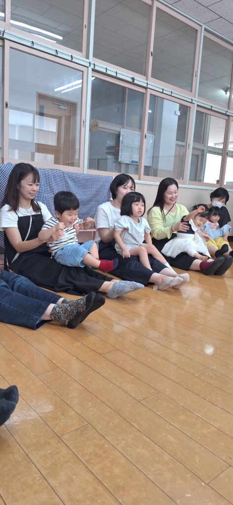 にぎりぱっちり歌ったり、音に合わせてゆらゆらしたり、最後は半分こ✨️