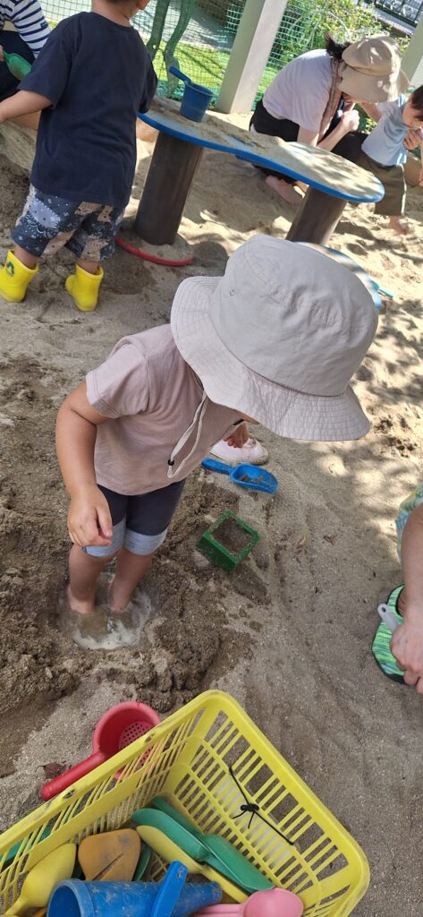 砂遊びに満足したあとは、水遊びをしたり園庭の遊具で遊んだり✨️自分のしたいことを選んで楽しむ子どもたちの姿がありました😊