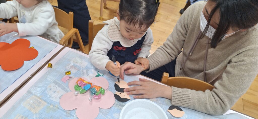登園したお友達からおひなさま作り🎎