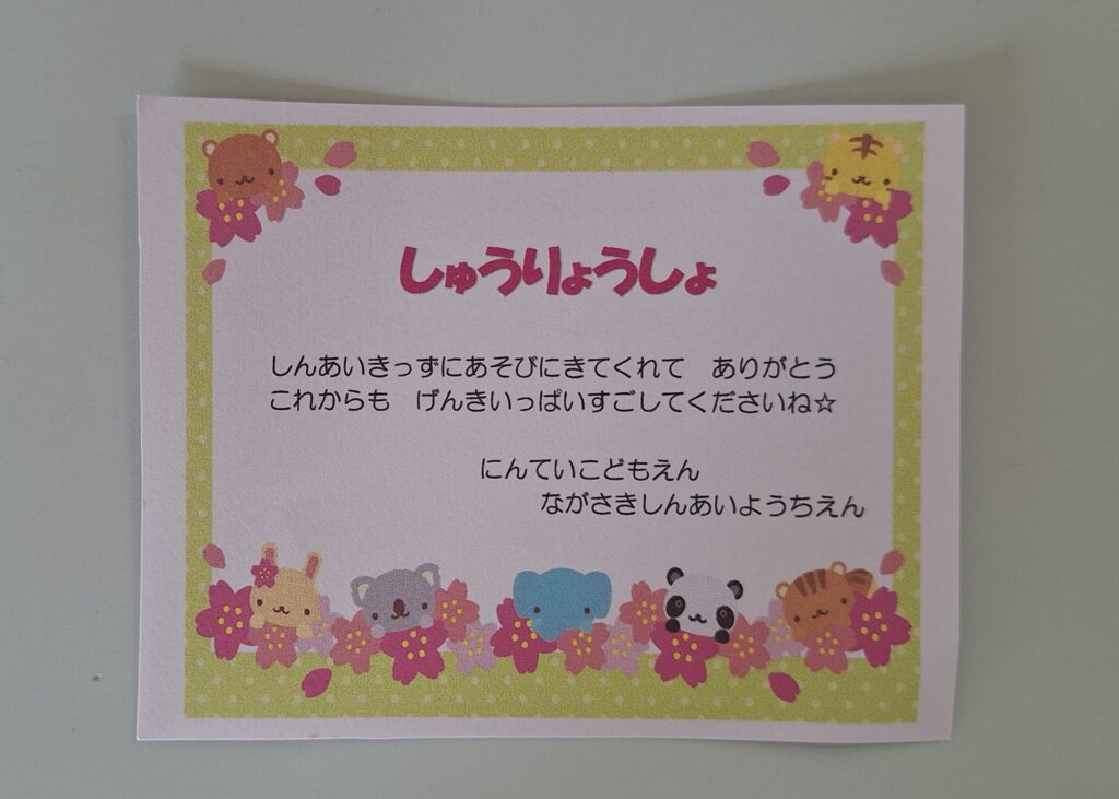 今日は今年度最後のしんあいきっず✨️写真付きの修了証をお渡しさせていただきました😌