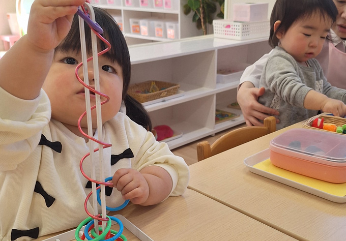 マリアモンテッソーリの教えに基づき、成長を手助けしています。以上児さんとの交流もあり温かな環境の中でお子様をお預かりいたします。